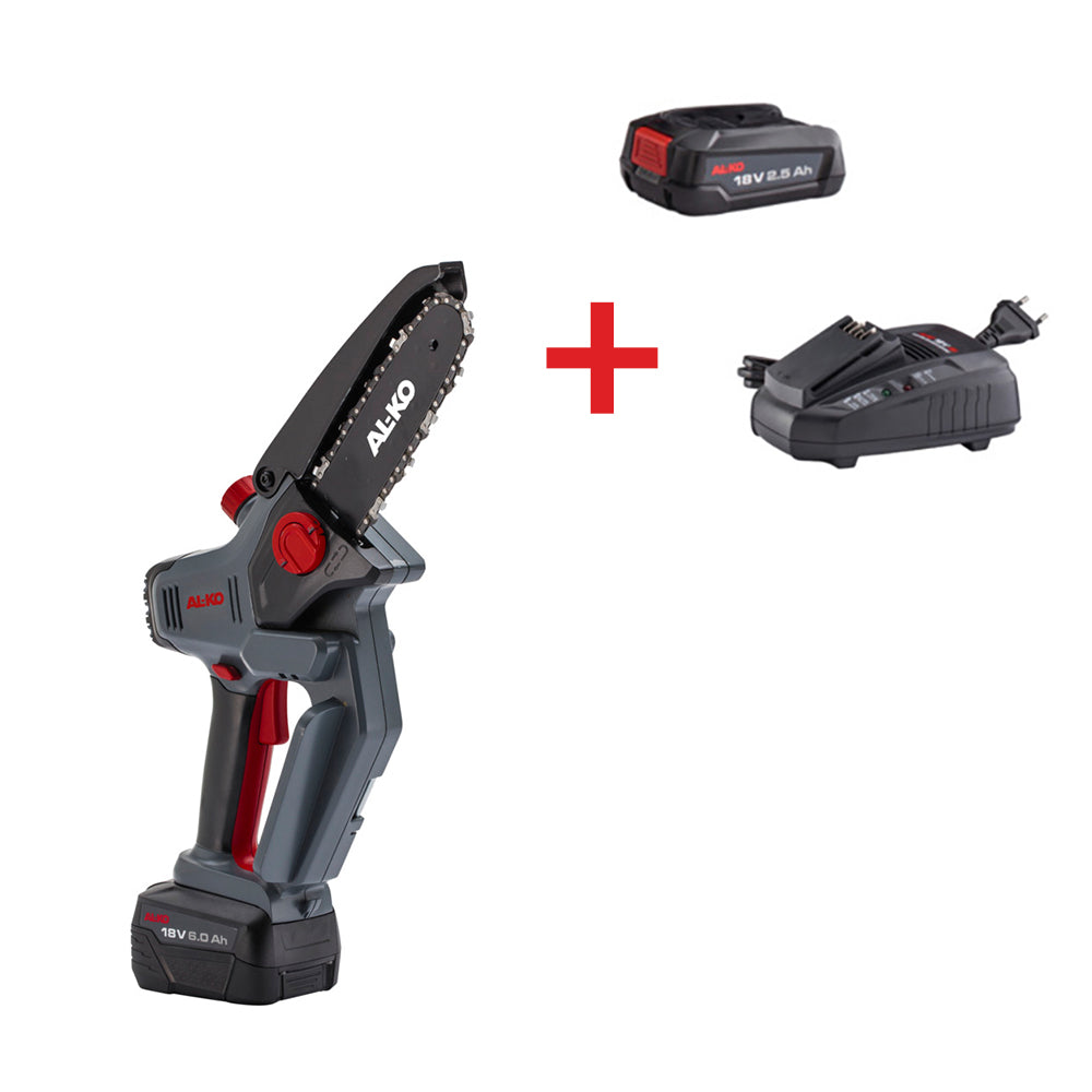 A: Ja, die AL-KO Akku-Minikettensäge 18V - CSM 1815 wird mit einem 2.5 Ah Akku und einem passenden Ladegerät geliefert.