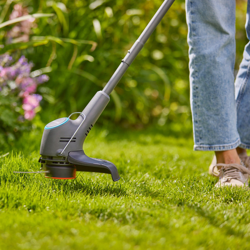 Mit dem Gardena PowerTrim wird das Trimmen von Rasenflächen zum Kinderspiel. Das Schneiden von Gras an Mauern, Hochbeeten und Terrassen geht mühelos mit dem Gardena PowerTrim von der Hand, was den Rasentrimmer zu einer idealen Ergänzung zum Rasenmäher macht.