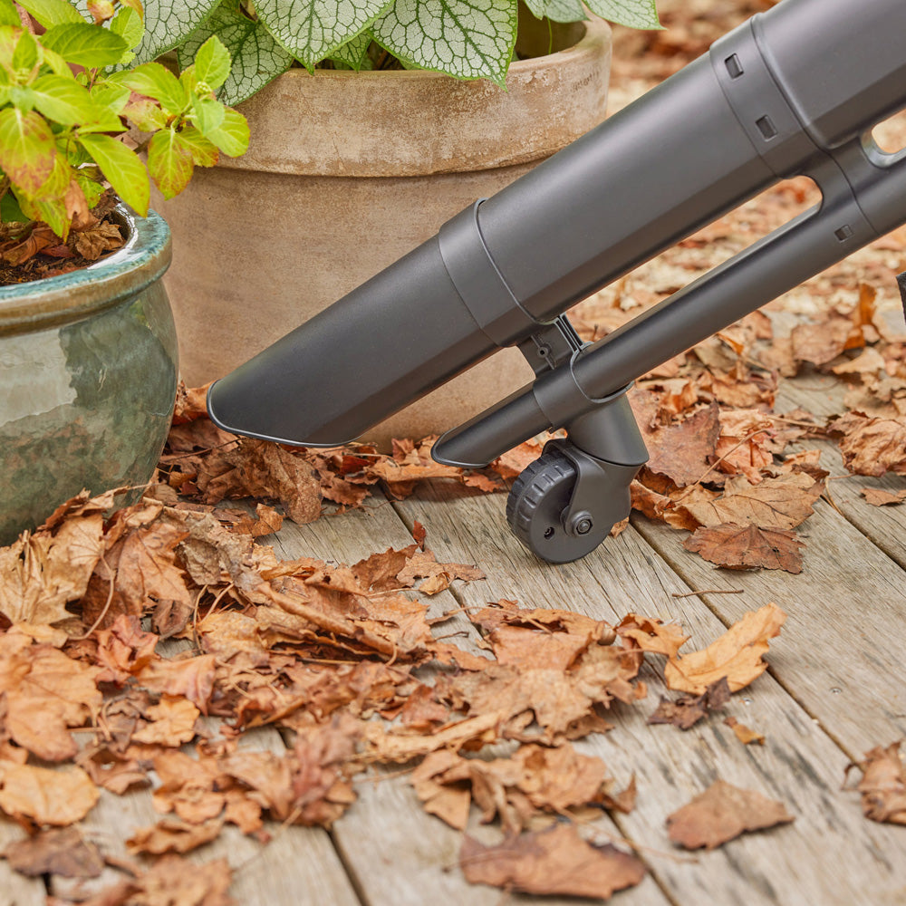 Der Gardena Akku Laubbläser besitzt ein festverbautes und höhenverstellbares 360-Grad-Rad, das das Manövrieren auf verschiedenen Oberflächen ermöglicht. Das Metall-Laufrad reduziert die Belastung bei der Gartenarbeit nachhaltig.
