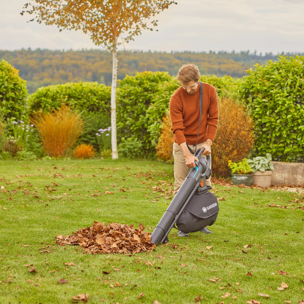 Der Gardena Akku Laubsauger hat einen bürstenlosen Motor verbaut, der mit seinem Luftstrom Laub einsaugt. Das Mulchmesser zerkleinert dieses anschließend. Die Saug- und Blasleistung kann dank Ein-Finger-Steuerung reguliert werden und auch der Power-Boost-Modus wird so aktiviert.