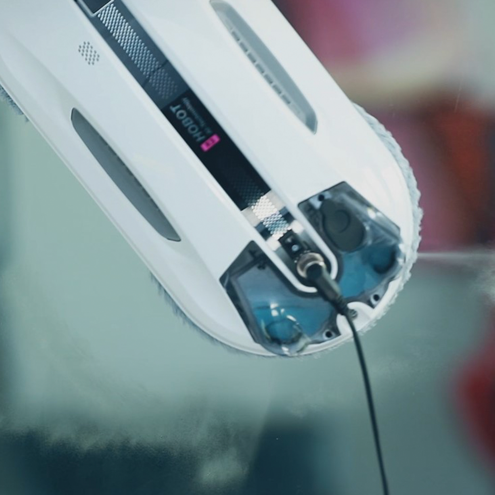 Mit dem Fensterroboter Hobot hat das aufwendige Putzen von Fenstern endlich ein Ende. Der Hobot R3 sorgt für streifenfreien Glanz und ist zudem auf verschiedenen Oberflächen einsetzbar. Damit optimale Reinigungsergebnisse erzielt werden, ist der Fensterputzroboter mit 2 rotierenden Wischpads sowie der Doppelsprüh-Technologie ausgestattet. Die wasch- und wiederverwendbaren Pads sind aus Mikrofaser und eignen sich ideal für die Reinigung von Glas oder ähnlichen Oberflächen. Das Ultraschall-Sprühsystem mit 2 Düsen gibt einen hauchdünnen Wasserfilm auf den Untergrund ab, um das Ergebnis zu optimieren. Der Fenster Roboter Hobot R3 enthält außerdem K.I.-gestützte Technologie zur Berechnung der bestmöglichen Reinigungsroute. Die Steuerung kann bequem per Bluetooth-App oder über die mitgelieferte Fernbedienung erfolgen. Damit du den Fensterputzroboter auch guten Gewissens alleine arbeiten lassen kannst, verfügt er über diverse Sicherheitsfeatures. Neben einem 4,5m langen Sicherheitsseil enthält der Hobot R3 einen Notfall-Akku, der den Haushaltsroboter im Falle eines Stromausfalls für weitere 20 Minuten mit Energie versorgt. Weitere Vorteile des Fensterputzroboters R3 sind u.a.: